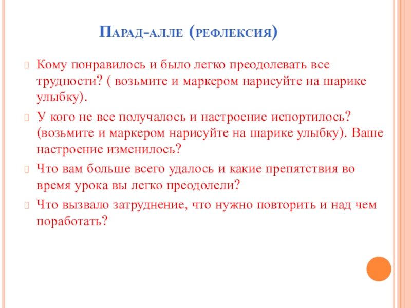 У кого не все получалось и настроение испортилось? (возьмите и маркером нарисуйте на шарике улыбку). Ваше настроение изменилось?