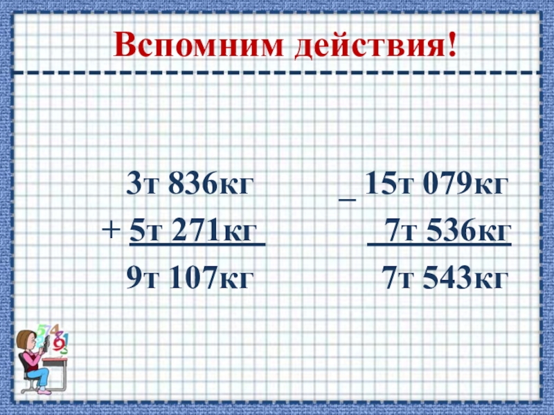 Вспомним действия!      3т 836кг     _ 15т 079кг