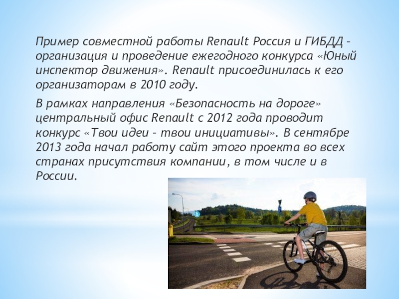 ежегодного конкурса «Юный инспектор движения». Renault присоединилась к его организаторам в 2010 году.
