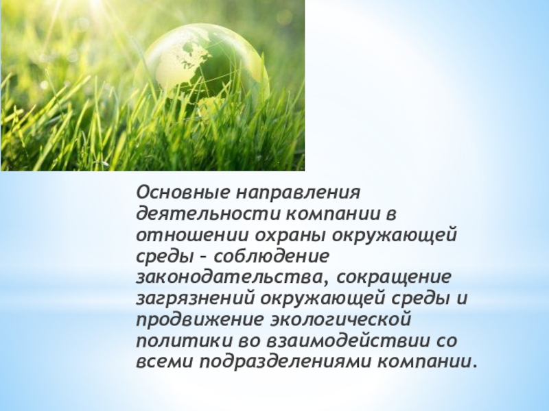 Слайд 16Основные направления деятельности компании в отношении охраны окружающей среды – соблюдение