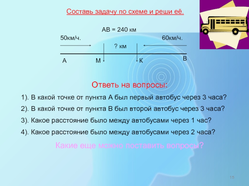 4). Какое расстояние было между автобусами через 2 часа?