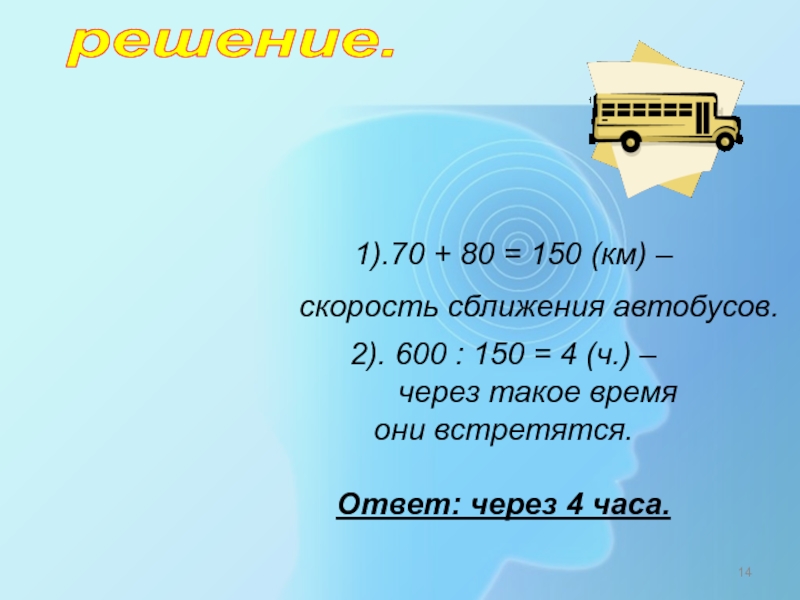 2). 45 +72 = 117 (км/ ч.). – скорость сближения автобусов .