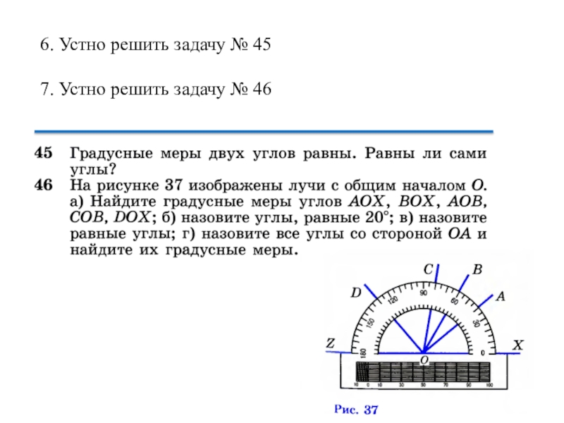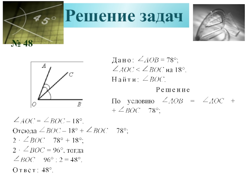 3. Начертить на доске и в тетрадях любые 2 угла и измерить их с помощью транспортира