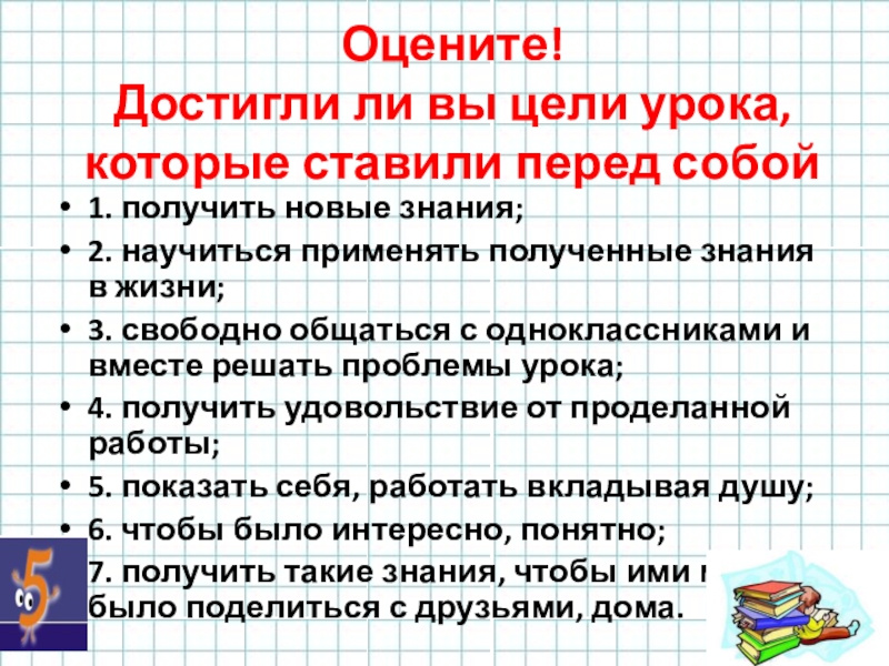 Достигли ли вы цели урока, которые ставили перед собой