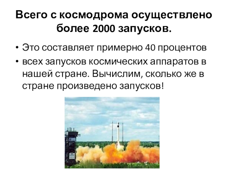 Слайд 12Всего с космодрома осуществлено более 2000 запусков.