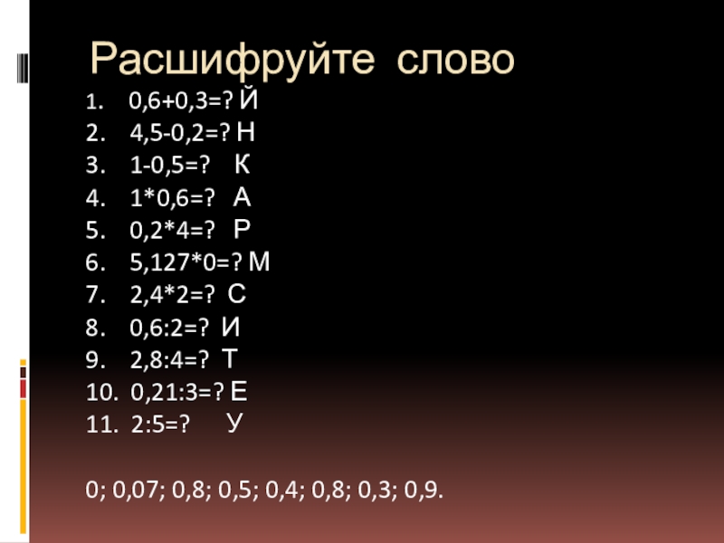 0; 0,07; 0,8; 0,5; 0,4; 0,8; 0,3; 0,9.