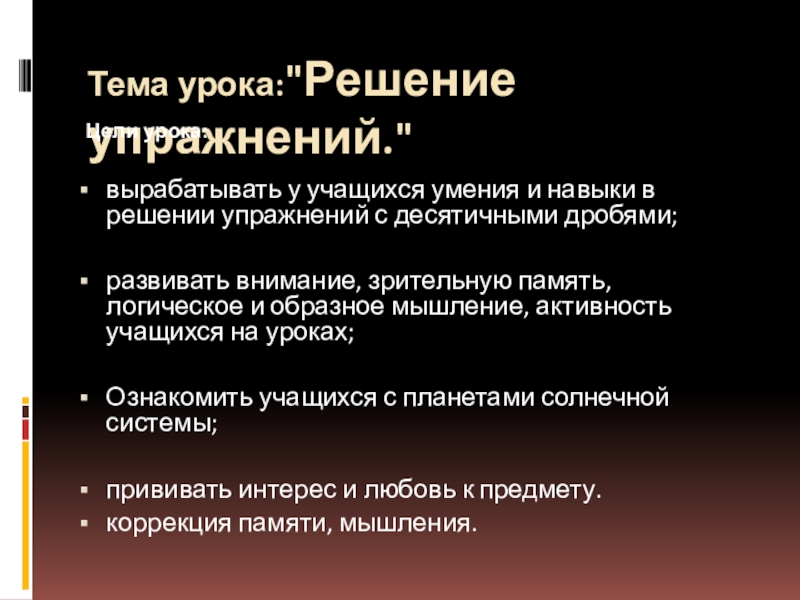 развивать внимание, зрительную память, логическое и образное мышление, активность учащихся на уроках;