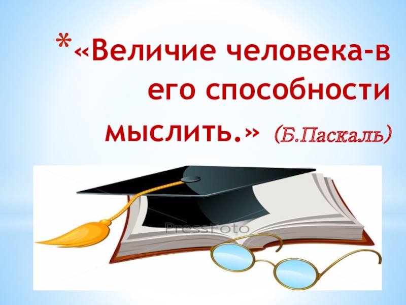 Слайд 3«Величие человека-в его способности мыслить.» (Б.Паскаль)
