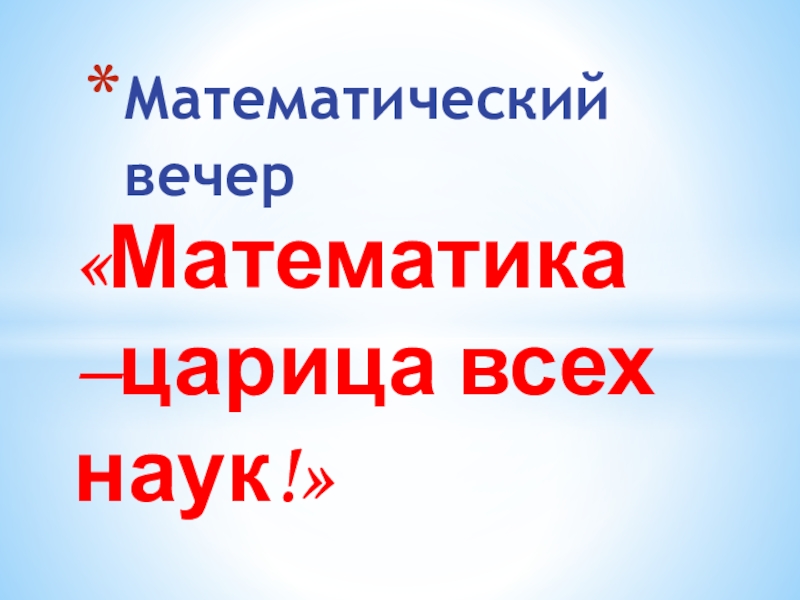 Презентация, доклад к вечеруМатематика-царица всех наук!