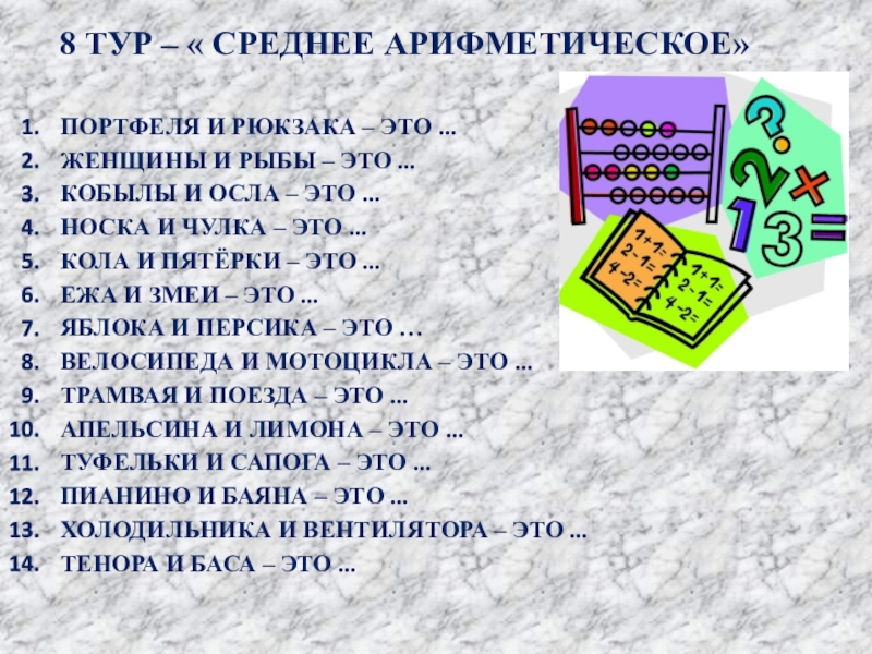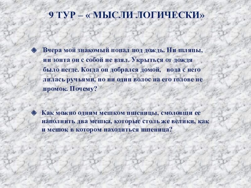 9 ТУР – « МЫСЛИ ЛОГИЧЕСКИ»