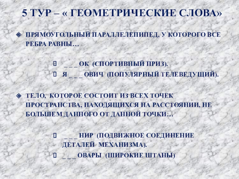 5 ТУР – « ГЕОМЕТРИЧЕСКИЕ СЛОВА»