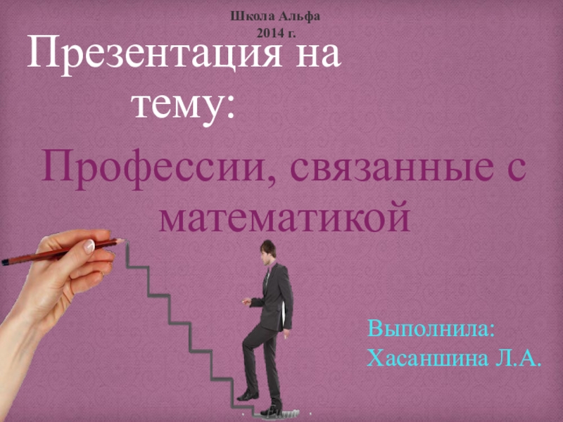 Презентация на тему:Профессии, связанные с математикойШкола Альфа2014 г.Выполнила: Хасаншина Л.А.
