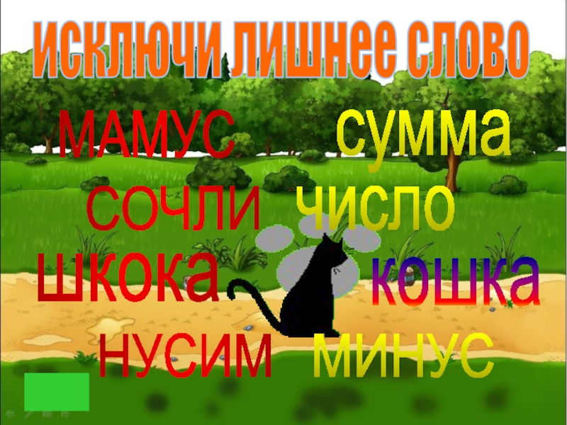 МАМУССОЧЛИшкокаНУСИМсуммачислокошкаМИНУСисключи лишнее слово
