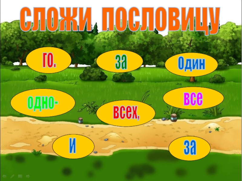 сложи пословицуОдинзавсех,ивсезаодно-го.