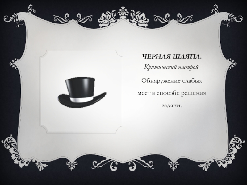 Черная Шляпа. Критический настрой.Обнаружение слабых мест в способе решения задачи.