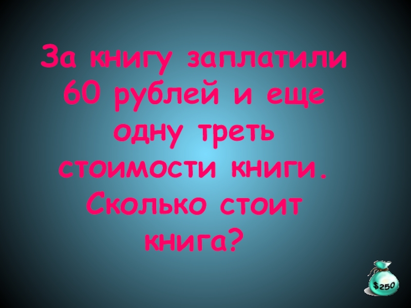 Слайд 20За книгу заплатили 60 рублей и еще одну треть стоимости книги.