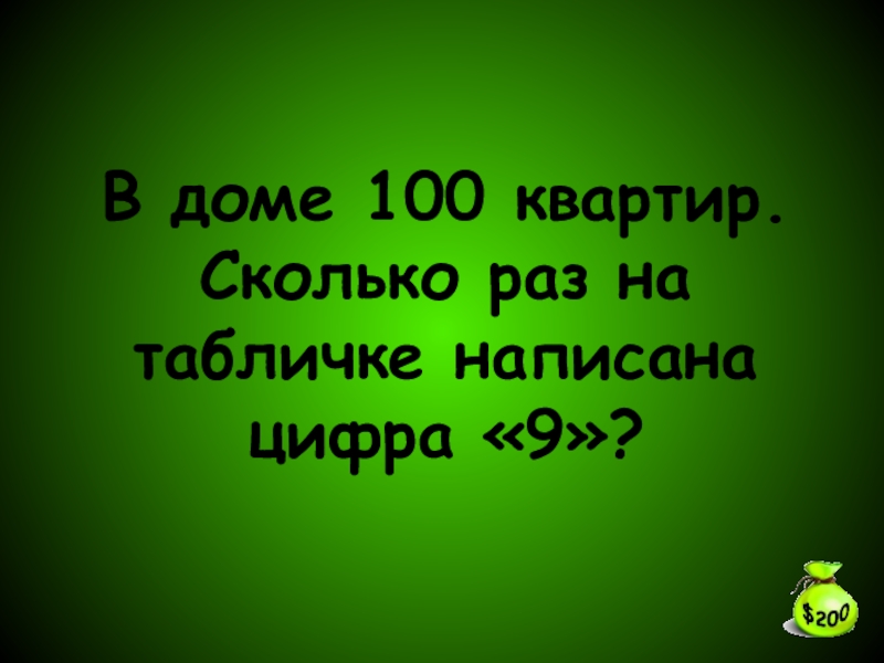 Слайд 16В доме 100 квартир. Сколько раз на табличке написана цифра «9»?