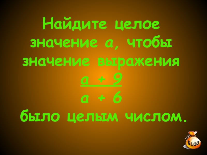 Слайд 9Найдите целое значение а, чтобы значение выражения