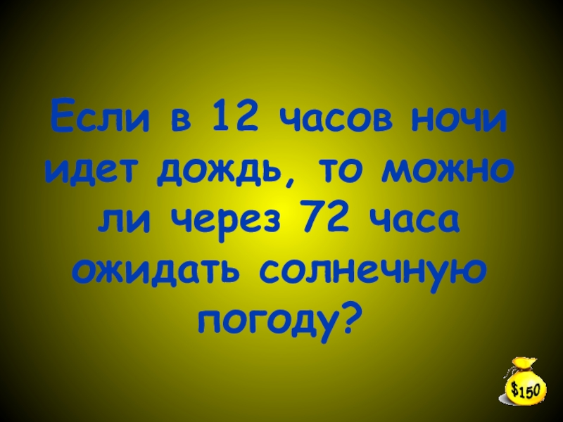 Слайд 12Если в 12 часов ночи идет дождь, то можно ли через