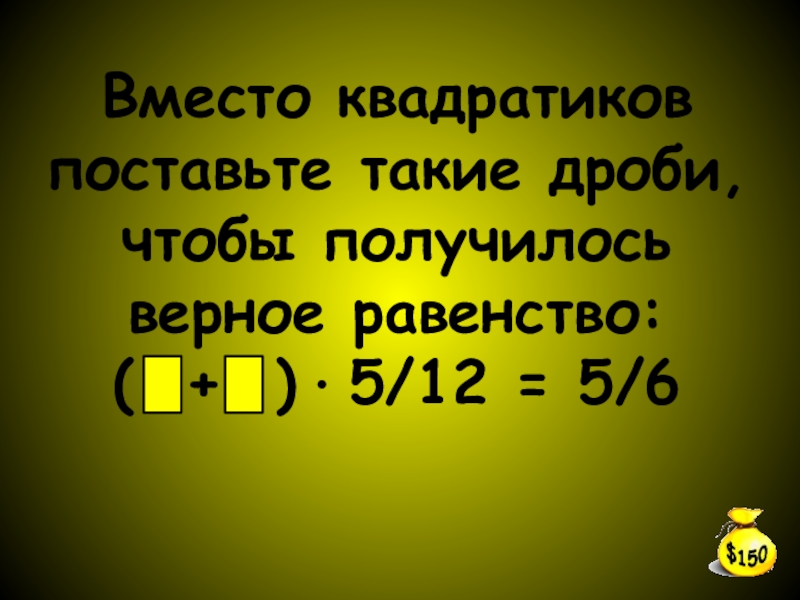 Вместо квадратиков поставьте такие дроби, чтобы получилось верное равенство:( + ) 5/12 = 5/6