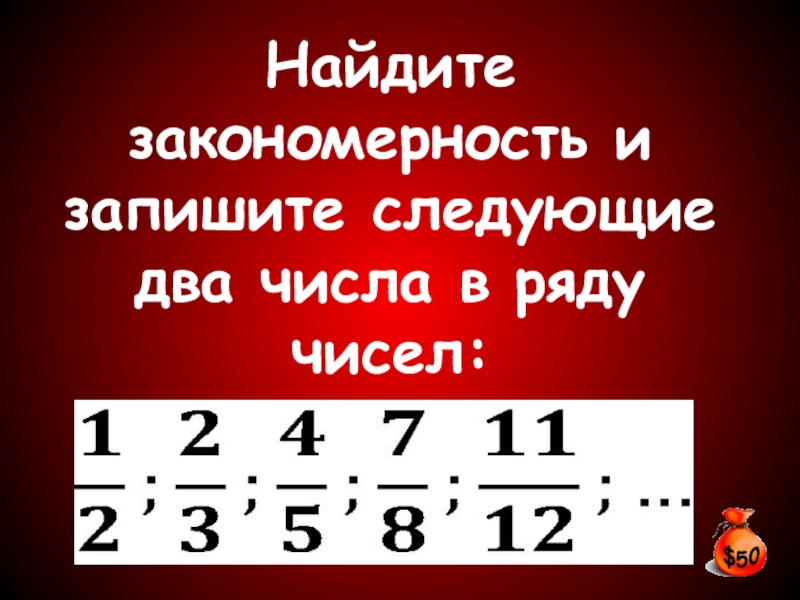 Слайд 2Найдите закономерность и запишите следующие два числа в ряду чисел: