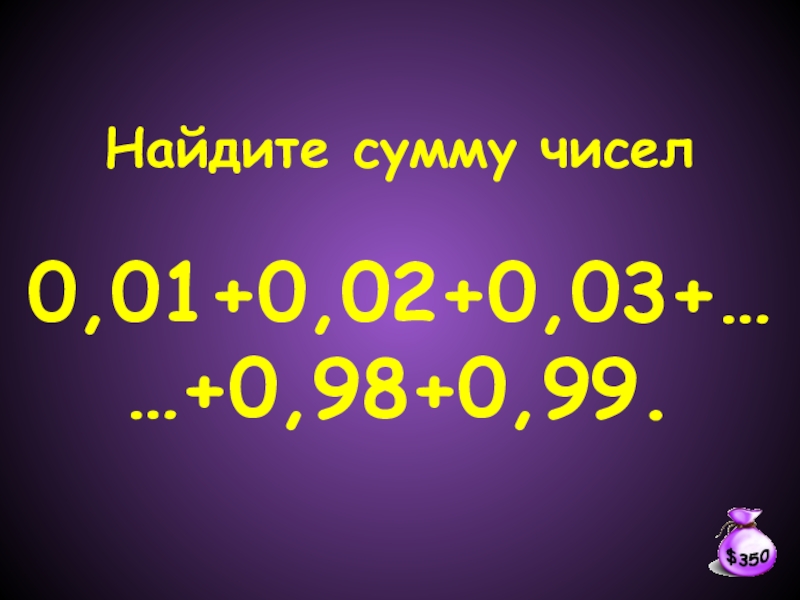 Найдите сумму чисел 0,01+0,02+0,03+……+0,98+0,99.