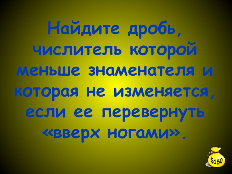 Слайд 10Найдите дробь, числитель которой меньше знаменателя и которая не изменяется, если