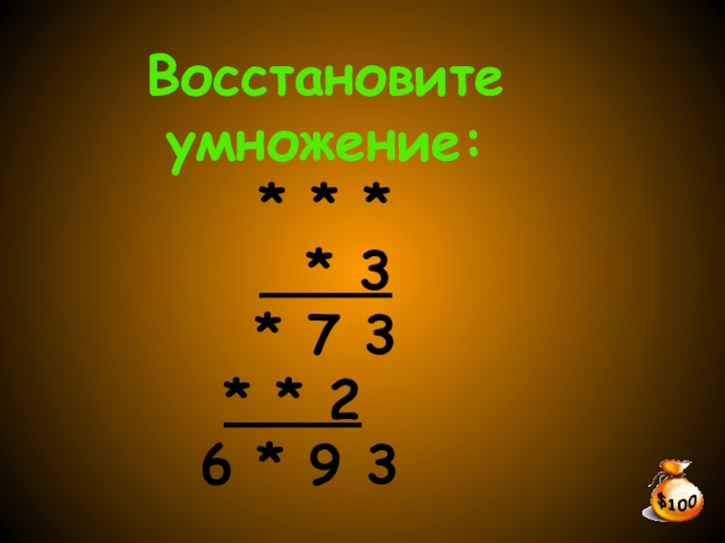Восстановите умножение:* * * * 3* 7 3    * * 2