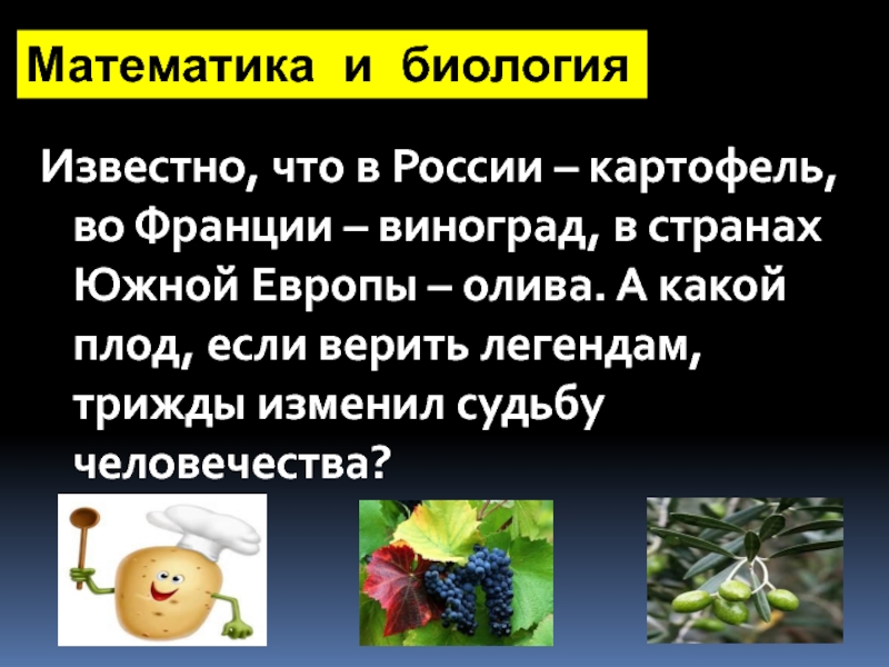 виноград, в странах Южной Европы – олива. А какой плод, если верить легендам, трижды изменил судьбу человечества?