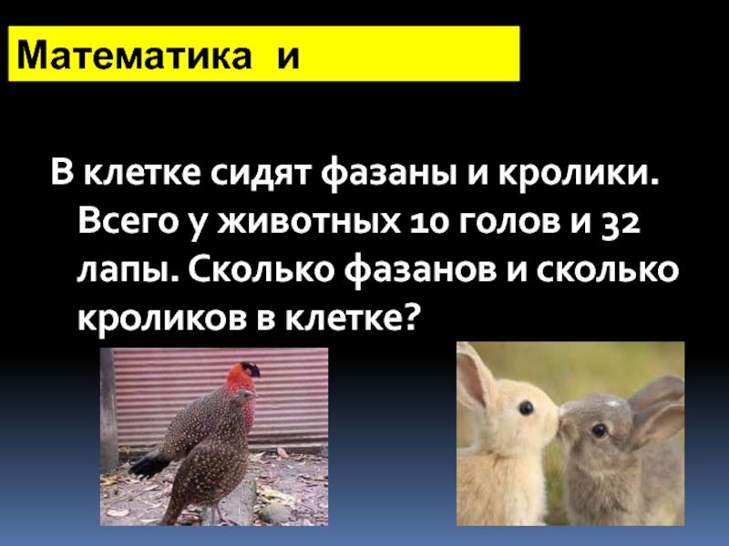 10 голов и 32 лапы. Сколько фазанов и сколько кроликов в клетке?