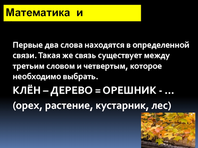 КЛЁН – ДЕРЕВО = ОРЕШНИК - …