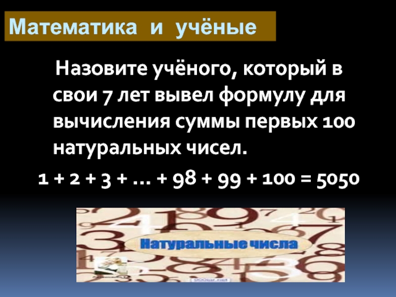 1 + 2 + 3 + … + 98 + 99 + 100 = 5050