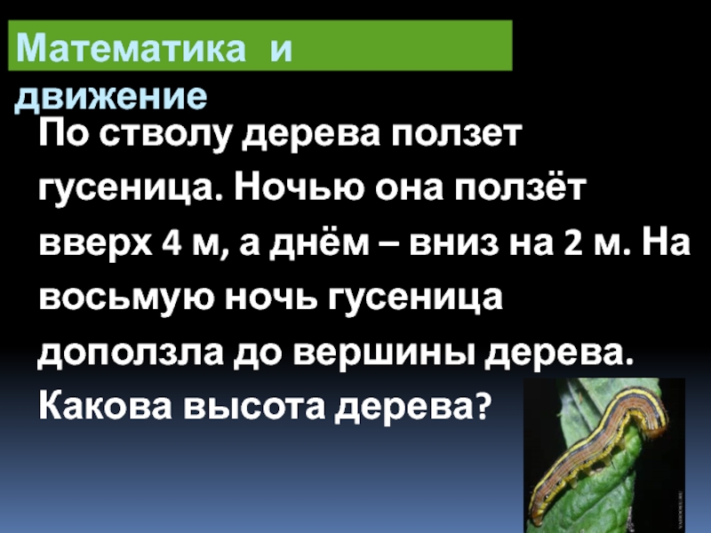 По стволу дерева ползет гусеница. Ночью она ползёт вверх