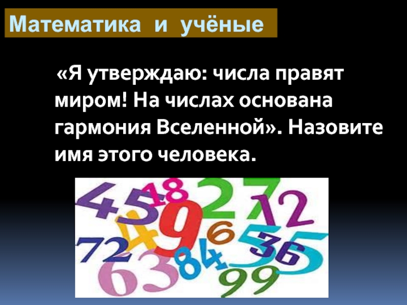 «Я утверждаю: числа правят миром! На числах основана гармония