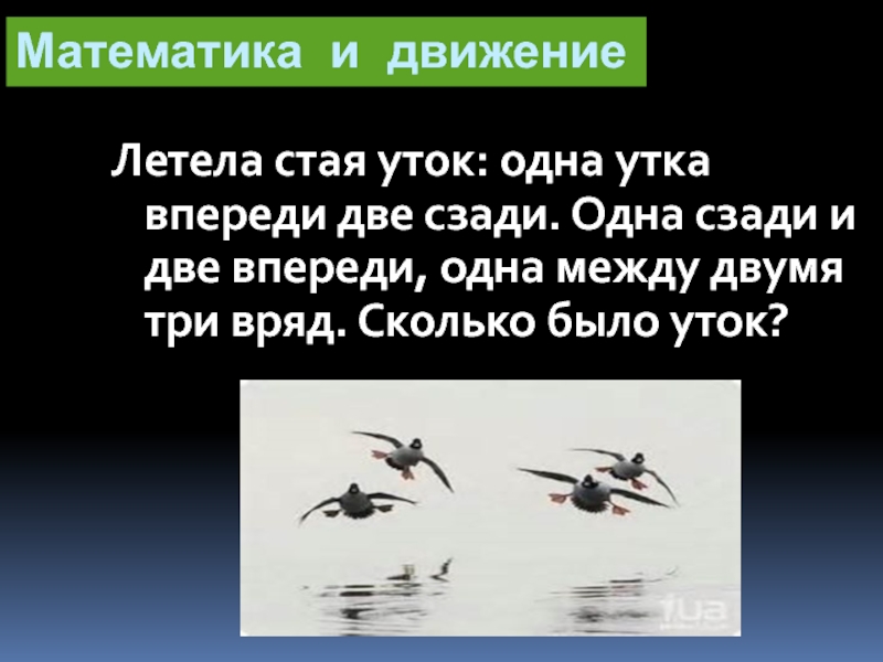 сзади и две впереди, одна между двумя три вряд. Сколько было уток?