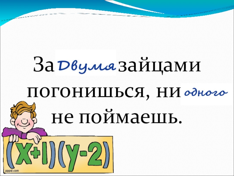 Слайд 7За … зайцами погонишься, ни … не поймаешь.