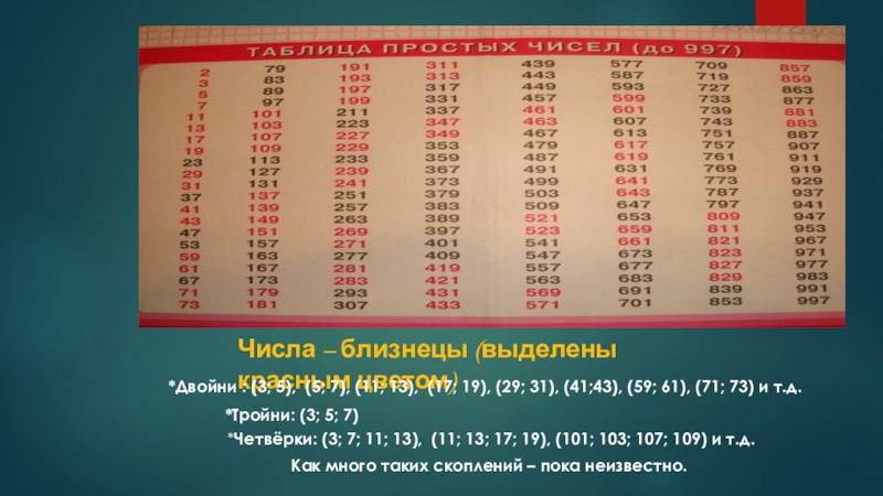 *Четвёрки: (3; 7; 11; 13), (11; 13; 17; 19), (101; 103; 107; 109) и т.д.