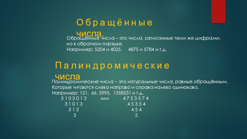 Палиндромические числа – это натуральные числа, равные обращённым,