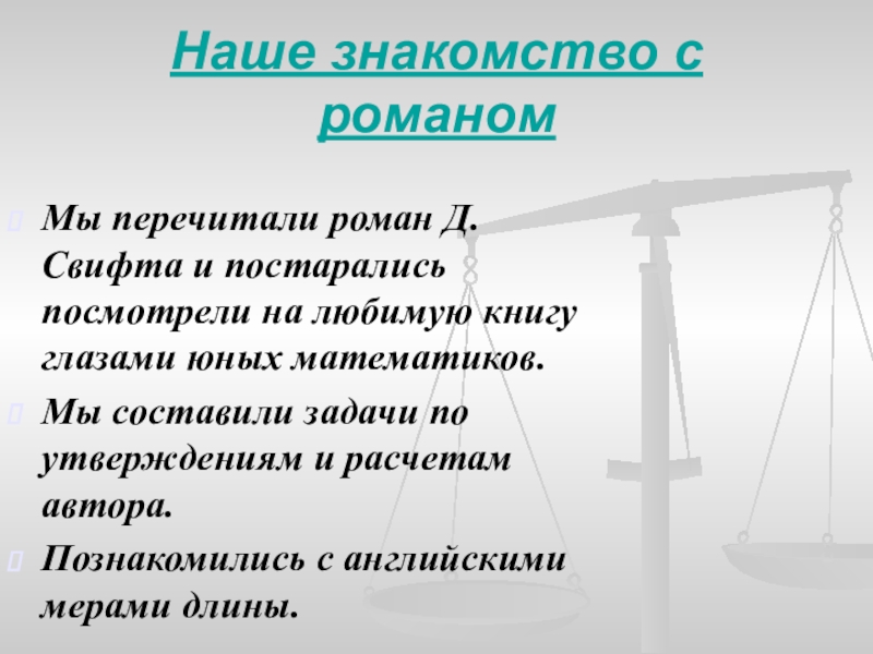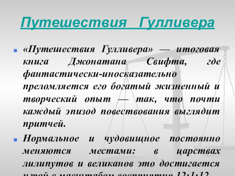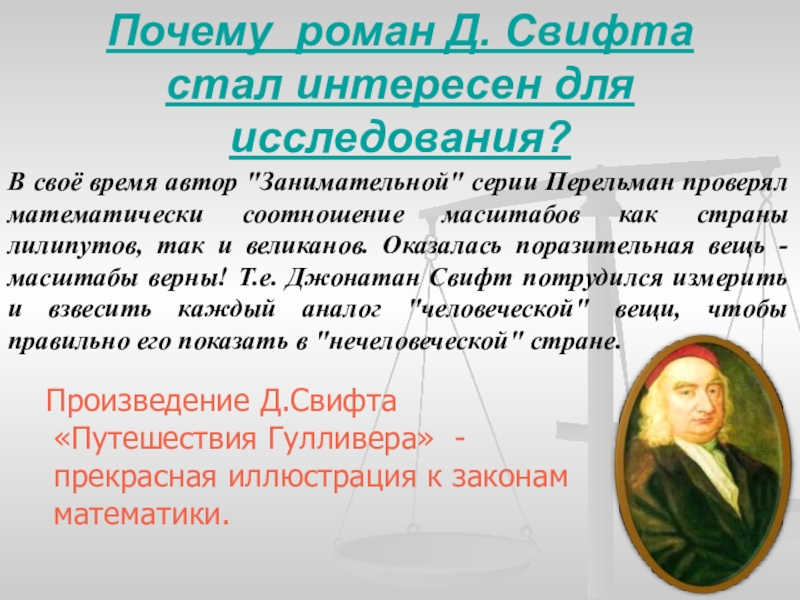 Слайд 3 Произведение Д.Свифта«Путешествия Гулливера» - прекрасная иллюстрация к законам математики.