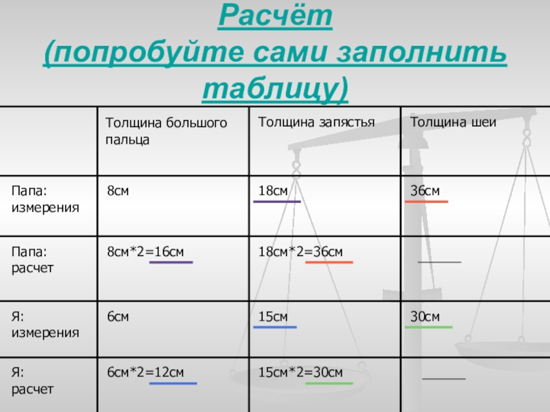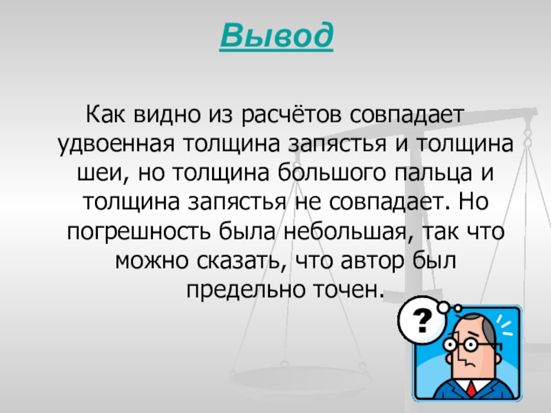 Как видно из расчётов совпадает удвоенная толщина запястья и толщина шеи,