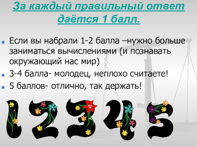 Слайд 17За каждый правильный ответ даётся 1 балл.