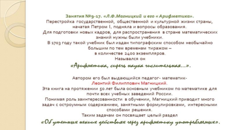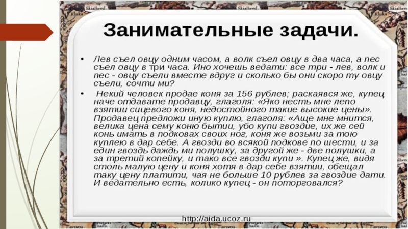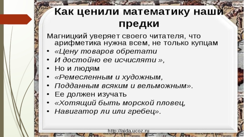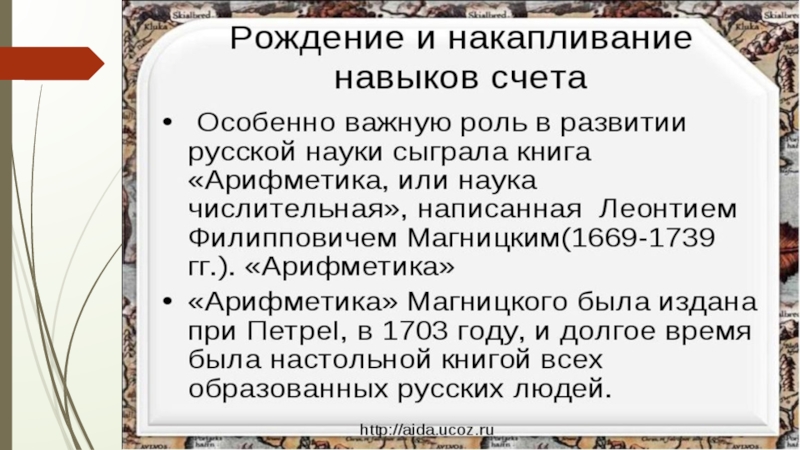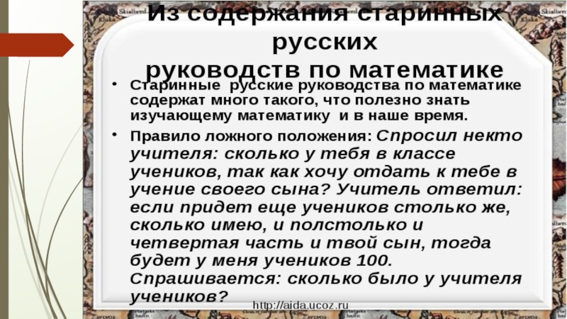 Презентация, доклад к внеклассному занятию по математике Математика на Руси ( 4 класс )