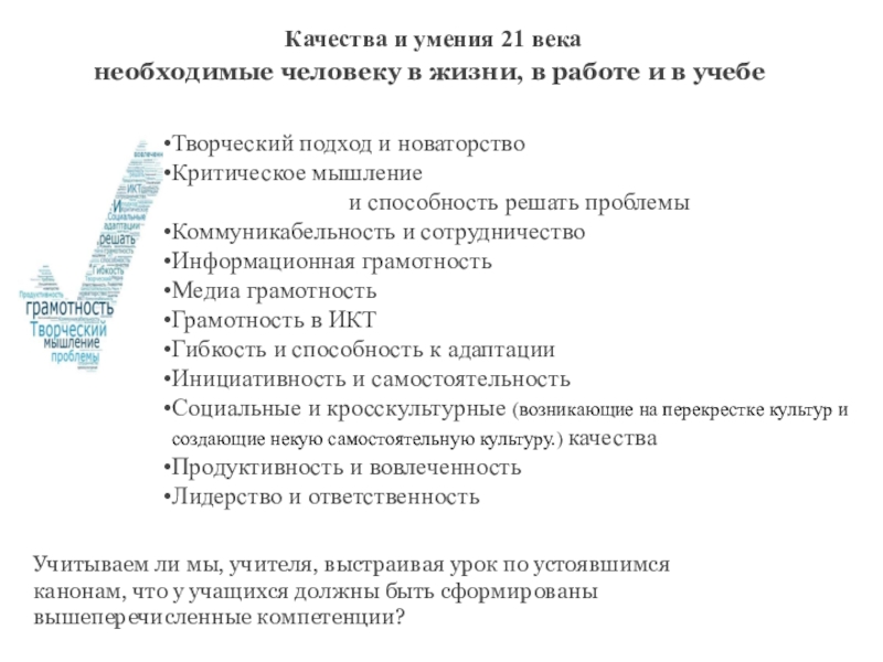Учитываем ли мы, учителя, выстраивая урок по устоявшимся канонам, что у учащихся должны быть сформированы вышеперечисленные компетенции?