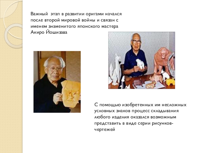 С помощью изобретенных им несложных условных знаков процесс складывания любого изделия оказался возможным представить в виде серии рисунков-чертежей