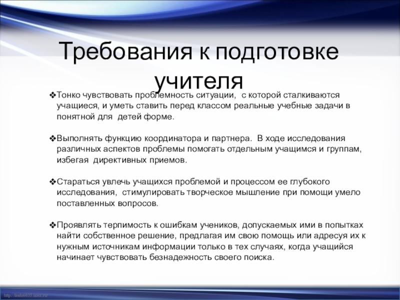 Концепция проблемного обучения [Электронный ресурс] // Сидоров С.В. Сайт педагога-исследователя. – URL: http://si-sv.com/publ/1/14-1-0-171 (дата обращения: 18.10.2016)