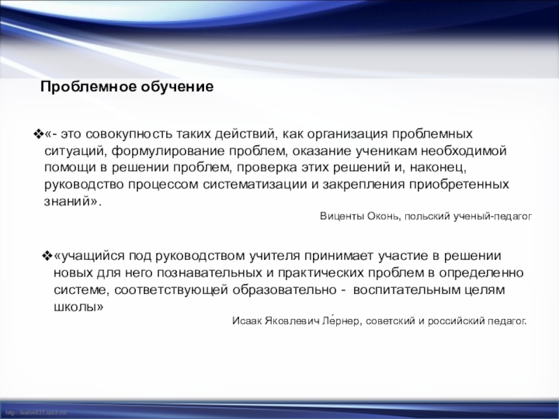Проблемное обучение на уроках математики [Электронный ресурс].– Режим доступа: httphttp://http://nsportalhttp://nsportal.http://nsportal.rhttp://nsportal.ru/shkola/obshchepedagogicheskie-http://nsportal.ru/shkola/obshchepedagogicheskie-tekhnologiihttp://nsportal.ru/shkola/obshchepedagogicheskie-tekhnologii/http://nsportal.ru/shkola/obshchepedagogicheskie-tekhnologii/libraryhttp://nsportal.ru/shkola/obshchepedagogicheskie-tekhnologii/library/2012/04/22/http://nsportal.ru/shkola/obshchepedagogicheskie-tekhnologii/library/2012/04/22/problemnoehttp://nsportal.ru/shkola/obshchepedagogicheskie-tekhnologii/library/2012/04/22/problemnoe-http://nsportal.ru/shkola/obshchepedagogicheskie-tekhnologii/library/2012/04/22/problemnoe-obucheniehttp://nsportal.ru/shkola/obshchepedagogicheskie-tekhnologii/library/2012/04/22/problemnoe-obuchenie-http://nsportal.ru/shkola/obshchepedagogicheskie-tekhnologii/library/2012/04/22/problemnoe-obuchenie-nahttp://nsportal.ru/shkola/obshchepedagogicheskie-tekhnologii/library/2012/04/22/problemnoe-obuchenie-na-http://nsportal.ru/shkola/obshchepedagogicheskie-tekhnologii/library/2012/04/22/problemnoe-obuchenie-na-urokakh