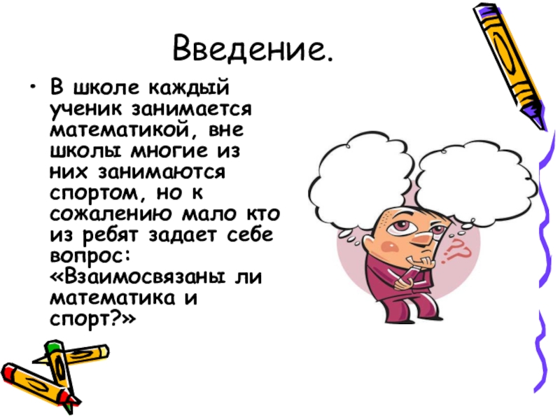 Введение.В школе каждый ученик занимается математикой, вне школы многие из них занимаются спортом, но к сожалению мало
