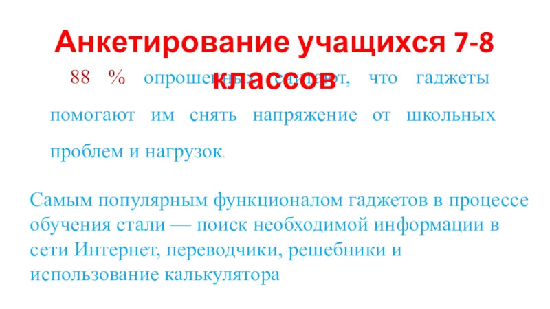 Самым популярным функционалом гаджетов в процессе обучения стали — поиск необходимой информации в сети Интернет, переводчики, решебники и использование калькулятора