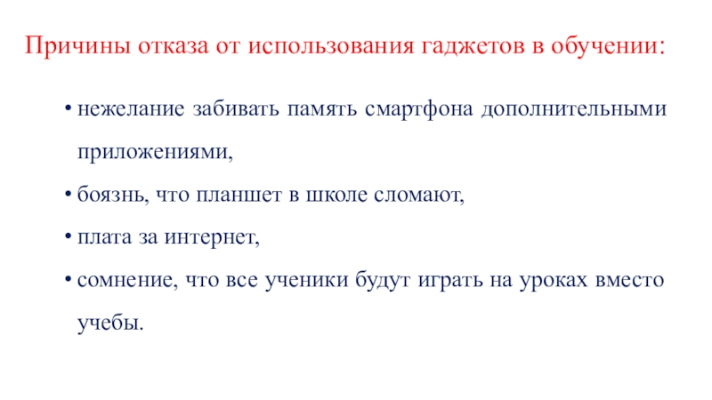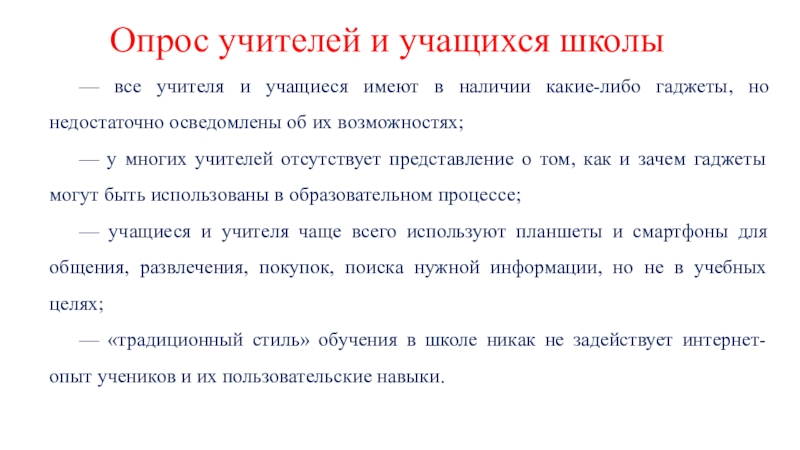 2/3 всех опрошенных хотели бы использовать гаджеты на всех уроках.