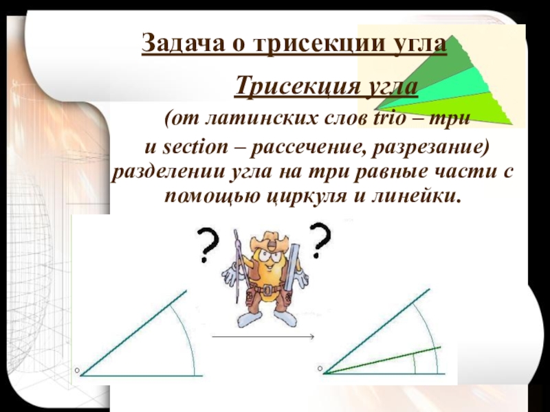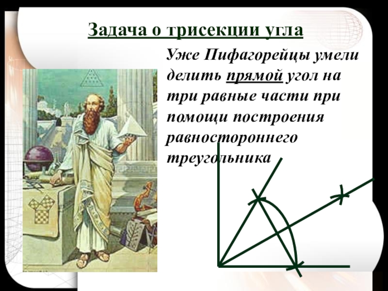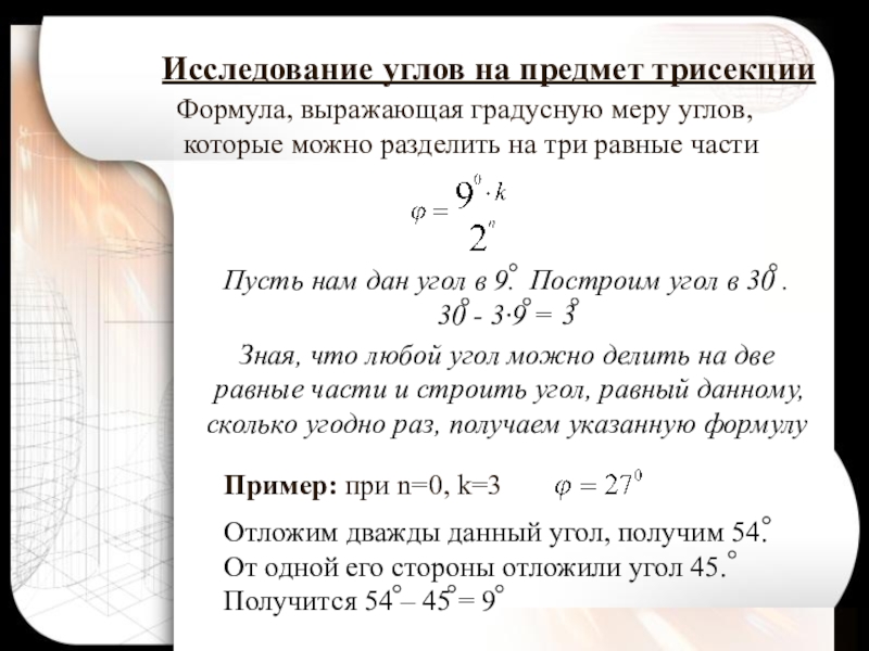 Пусть нам дан угол в 9. Построим угол в 30 .